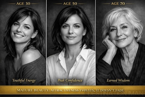 At what age does confidence peak? Research answers: 60. When does self-esteem reach its zenith? Studies confirm: 50-60. If these psychological foundations of attractiveness increase with age, why does culture insist beauty fades? The answer: cultural narratives contradict scientific reality. Mature beauty—characterized by confidence, emotional depth, authenticity, and presence—is often more attractive than youth, not despite age but because of it.