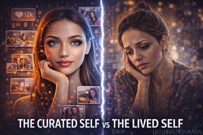 The curated self appears confident, consistent, and controlled. The lived self remains complex, uncertain, and evolving.