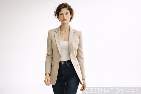 When wearing a structured blazer, push the sleeves up slightly (to just below your elbow) for a more relaxed, modern look that prevents the outfit from appearing too stiff or corporate.