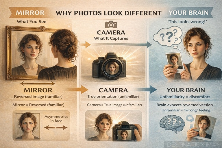 Because you are deeply familiar with your mirrored face, your brain perceives it as more natural and attractive. When you encounter a non-mirrored version in photos, your brain interprets the difference as a flaw.